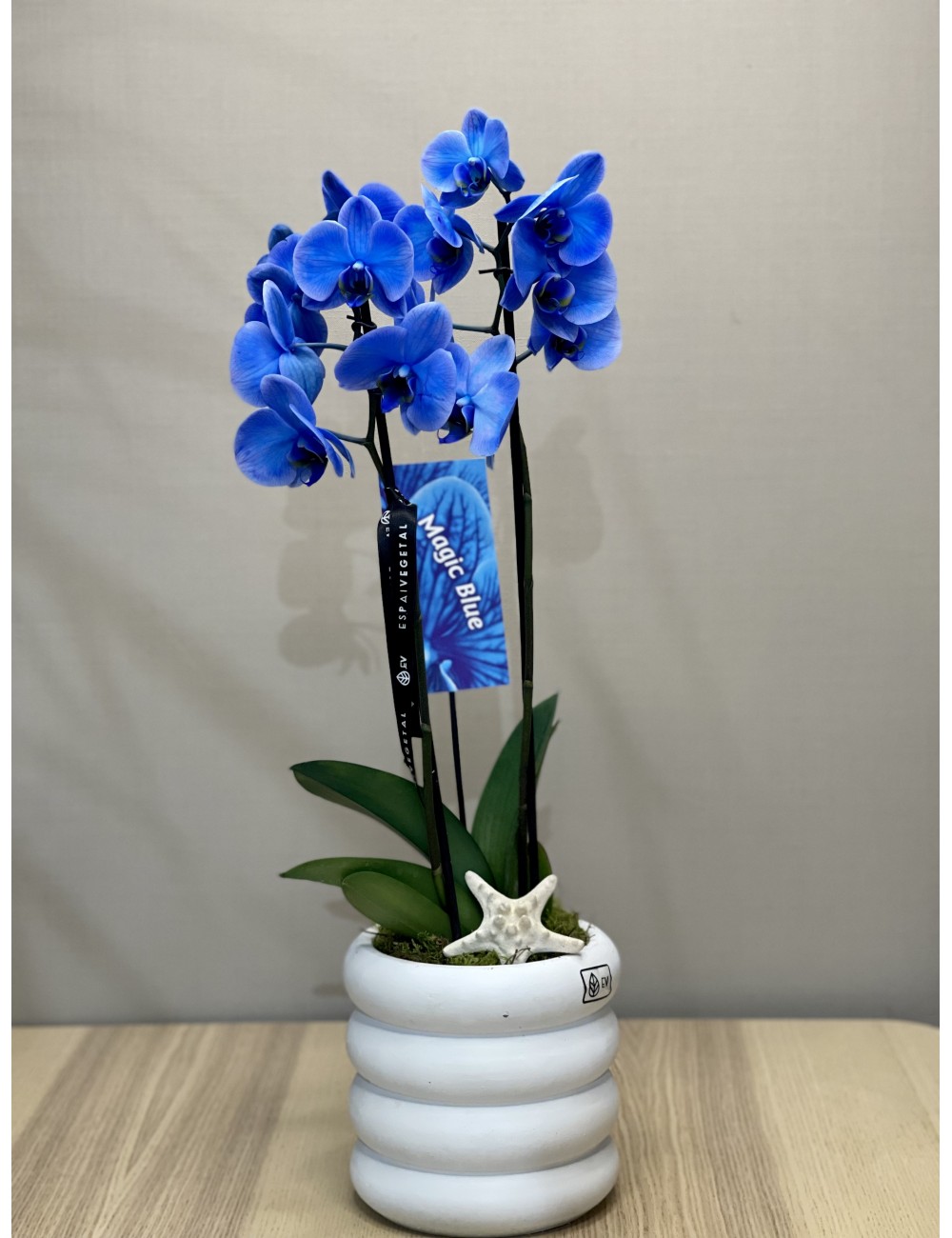 Las orquídeas en tonos blancos, violetas o azules son un regalo moderno y duradero. Su estilo minimalista y cuidado encaja a la perfección en hogares y despachos.